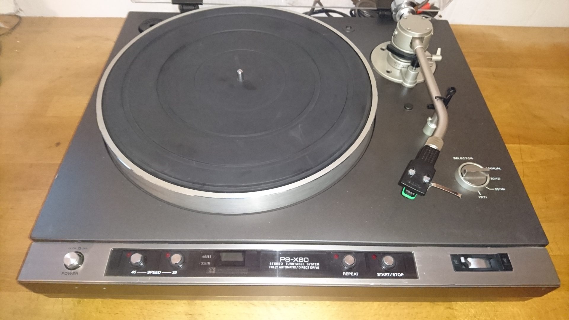 The Sony PS-X60 is a 2-speed, direct-drive, automatic turntable system with fitted PUA-7 tonearm.